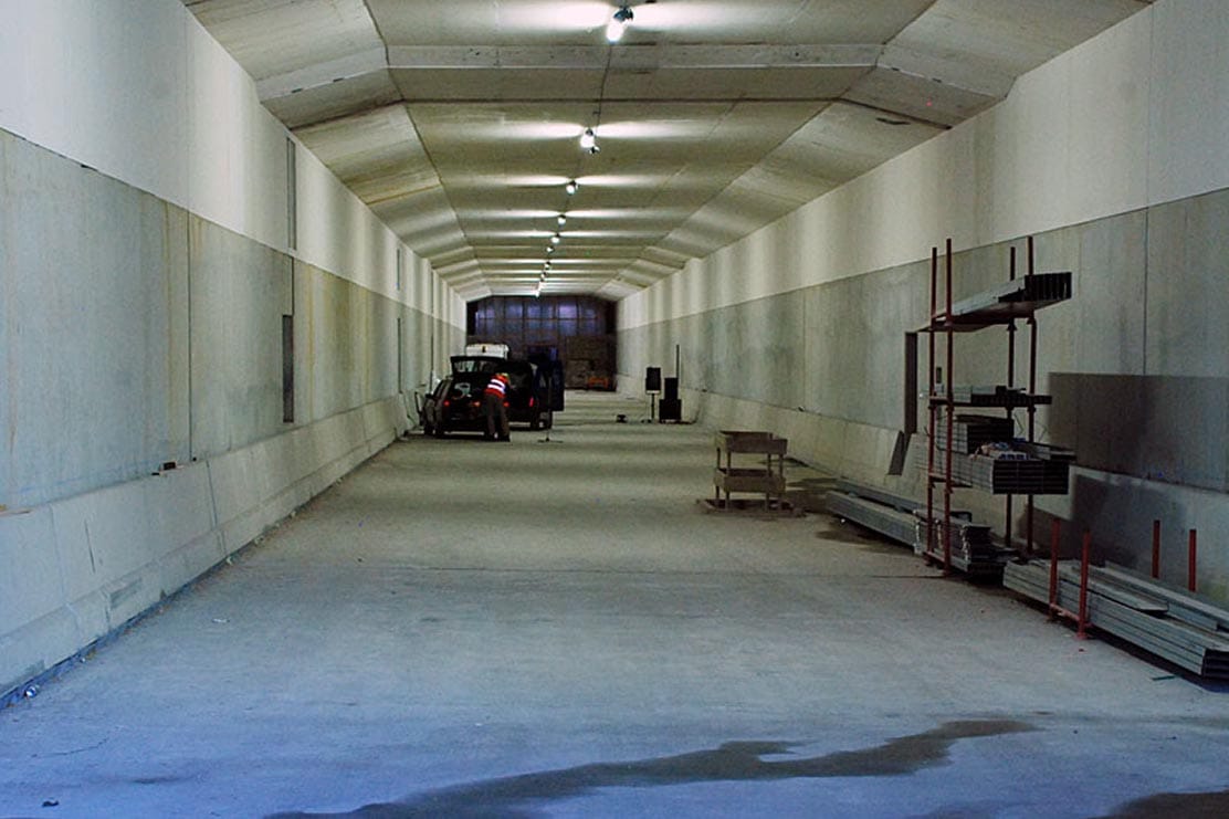 A subway tunnel under construction. No tracks are in here yet, so every angle looks identical. Very pretty, and a heavy, deep, satisfying reverb. Just run some low passed noise into it with the direct sound switched off for a nice and deep room tone.