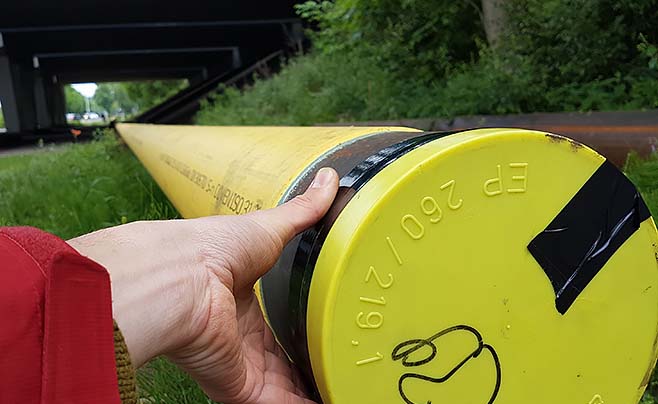 On the evening of june 12, Aram and Arjen departed for Schiedam harbour 561, for the Merwede built Rigid reeled pipe laying vessel “Seven Oceans”, owned by Subsea 7 of Aberdeen. A pipe laying vessel winds 45 cm diameter pipe made of 3 cm thick steel on a reel and drops it to the bottom of the ocean, typically between offshore oil rigs and the continent. This reel, the largest of its kind at date of recording, can hold 17 km of this type of pipe, and Audio Ease went to sample the core of it.