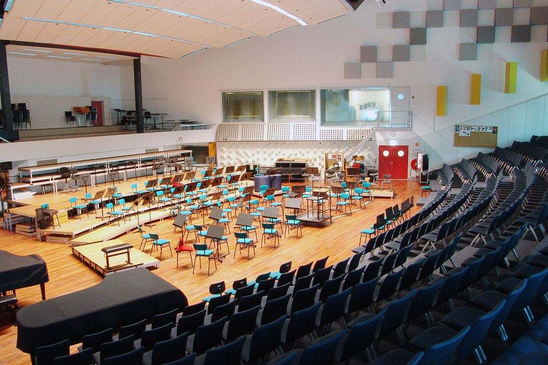The 1200 seat hall is particularly suitable for the recording of chamber music, but also chamber-orchestras or medium-sized orchestras.