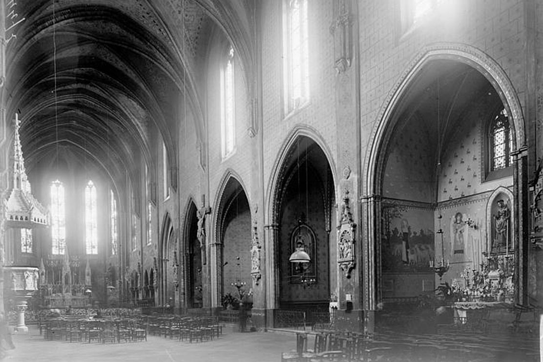 The construction of Saint-Alain, in the south of France, goes back to 1255. Its single naves width measures 13.8 meter, and its overall length is 73 meter. The cathedral is widely known for its famous organs, and many commercial recordings.