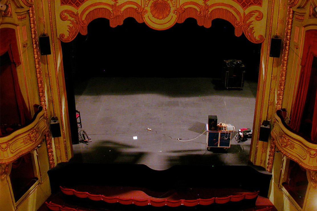 It is a wide, semi-circular room with only seats. The distance between visitors and artists is small at every point in the hall. Even from the two balconies, a seat offers an unobstructed view of the stage. The fully wooden interior and comfortable chairs further contribute to the warm and friendly atmosphere.