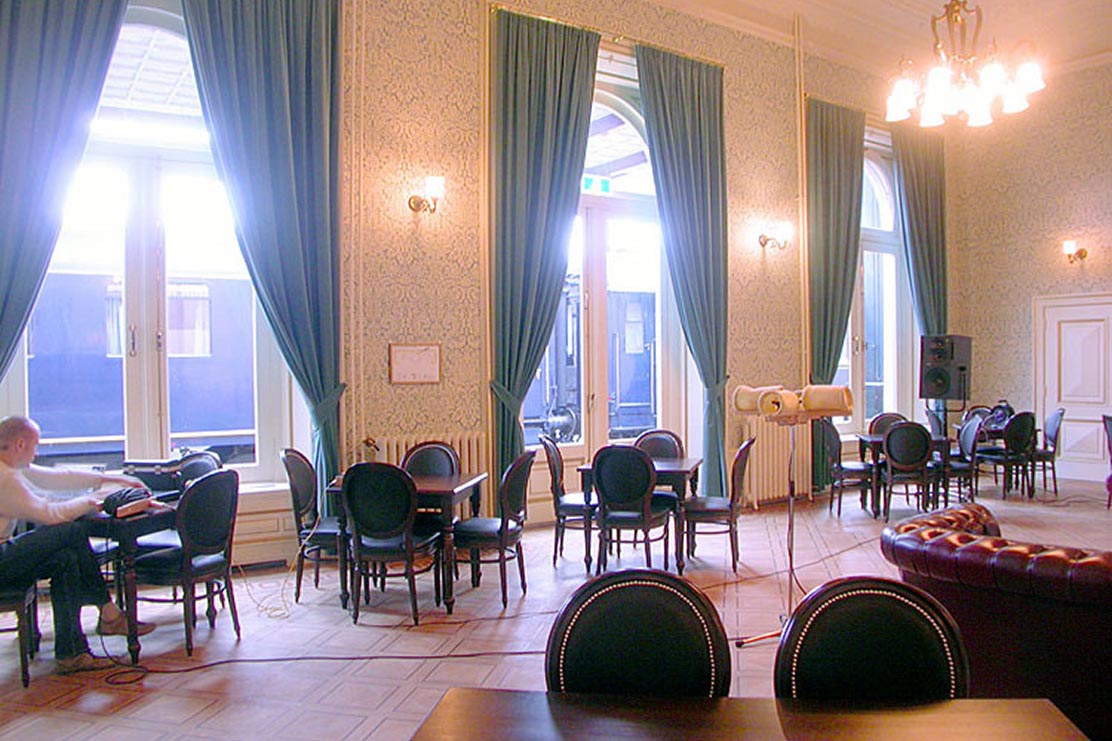 The Berlage zaal was the crowning glory of the work of architect Berlage. It was originally the meeting room of the Chamber of Commerce and Industry. The heavy carpet, very audible in the IR, is original from 1903. This impulse response set was recorded using a Genelec 1037 studio monitor and 6 DPA 4006 omni microphones.