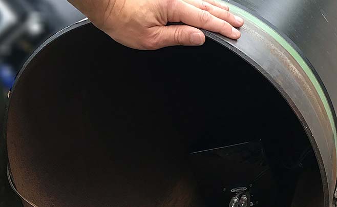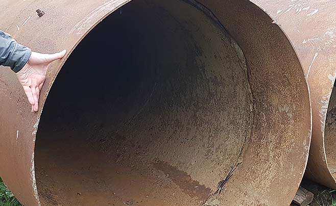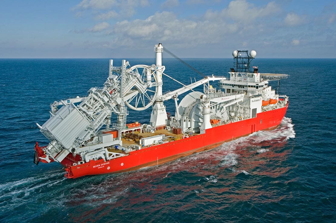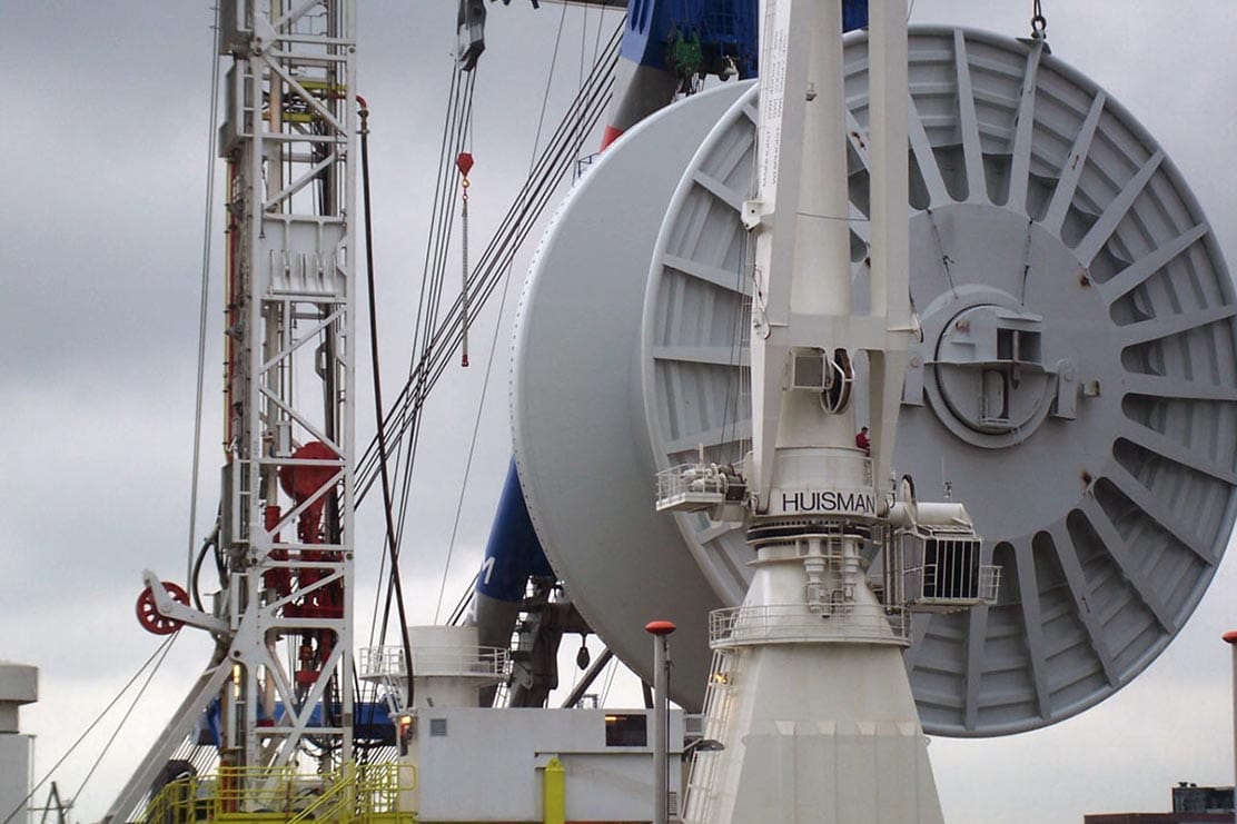 On the evening of june 12, Aram and Arjen departed for Schiedam harbour 561, for the Merwede built Rigid reeled pipe laying vessel “Seven Oceans”, owned by Subsea 7 of Aberdeen. A pipe laying vessel winds 45 cm diameter pipe made of 3 cm thick steel on a reel and drops it to the bottom of the ocean, typically between offshore oil rigs and the continent. This reel, the largest of its kind at date of recording, can hold 17 km of this type of pipe, and Audio Ease went to sample the core of it.