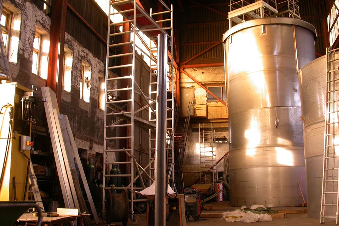 Bij de Leij is a beautiful old fashioned stainless steel tank factory in the north of the Netherlands. The Impulse Responses were made simply by banging steel with hammers and mallets. We felt very much ’in charge’ walking around in a place like this, authorized to smash whatever we preferred.