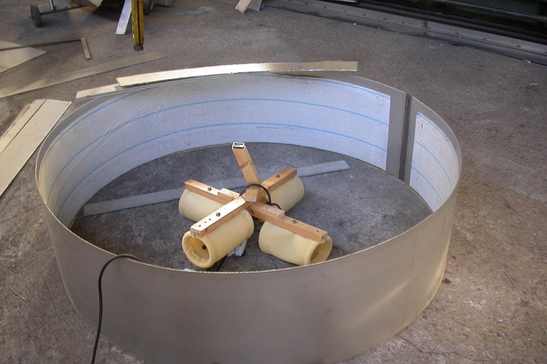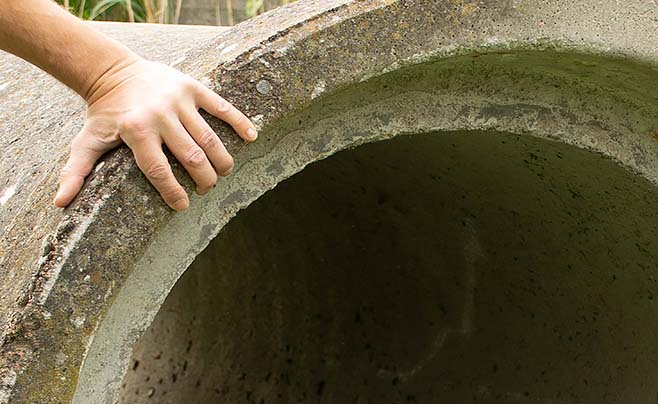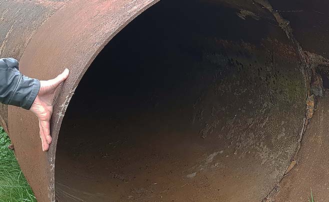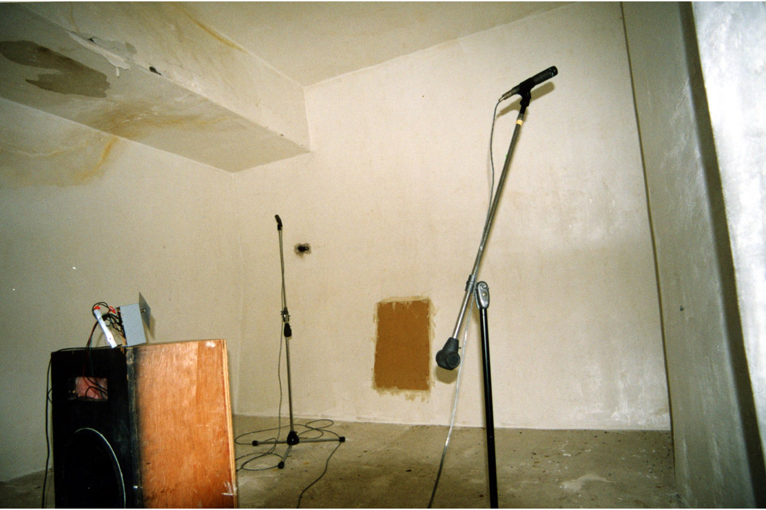 The tank is constructed from concrete which sits against the hard rock of Kinrive Hill. The only access for humans is through an 18 inch pipe. We recorded inside using 6 microphone stands with DPA 4006's and the largest Genelec that would fit through the hole in the entrance pipes, the 1032 monitor.