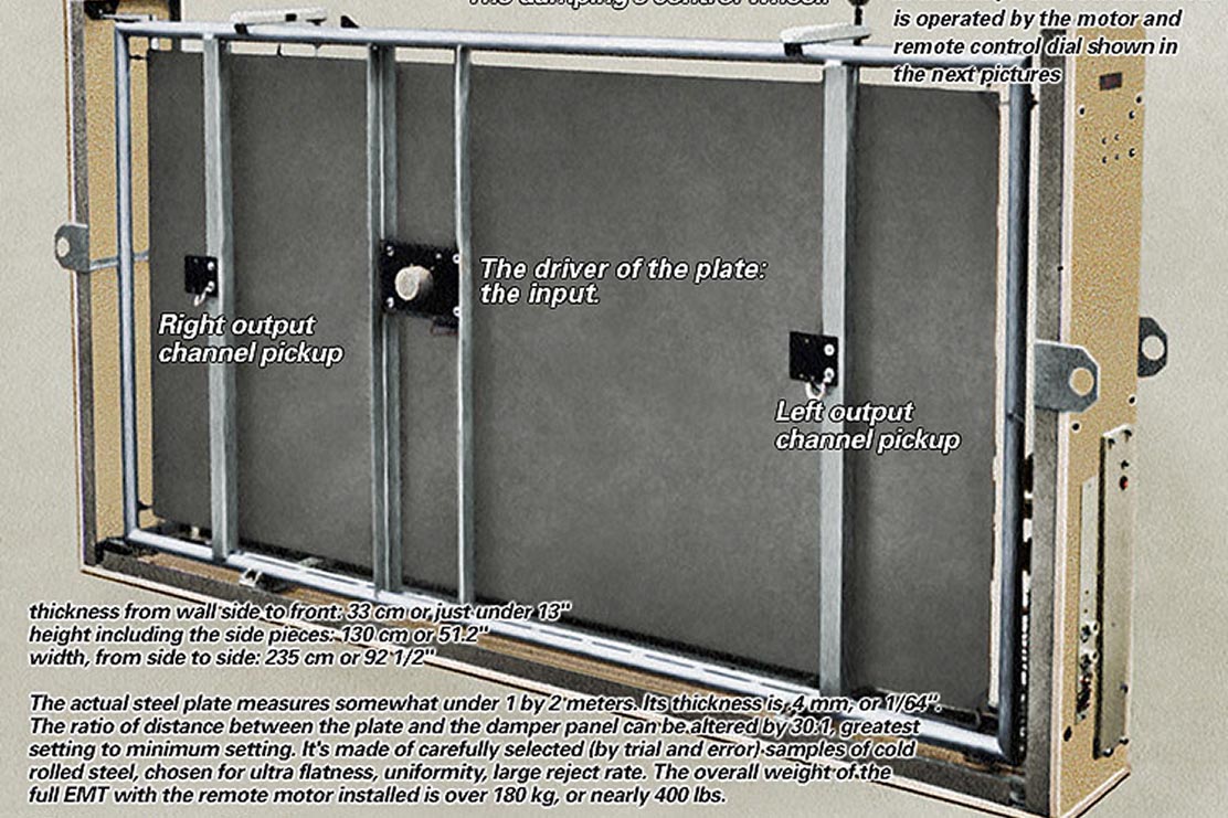 "Welcome to the wonderful world of EMT 140st Plate Reverberation. As a gift to the industry, I'm making available gratis these samples of my near mint 140st, vintage early 1971. It was added to my studio when Rachel Elkind and I expanded it into the lower floor of her Manhattan brownstone. I'd become familiar with earlier versions in graduate school, as Vladimir Ussachevsky used one in the Columbia University Electronic Music Center, where I was a student of his. This model is the epitome of electromechanical design, with extremely low noise solid state electronics replacing earlier troublesome tube circuits."