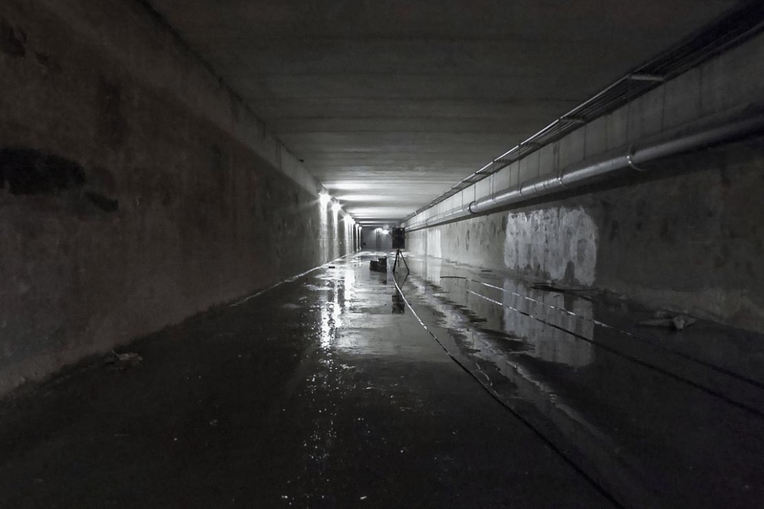 Underground flood tunnel in the city Utrecht, The Netherlands. This 120 meter (400 ft) long concrete underground tunnel in the center of the city is not accessible for public. During a transitioning phase of re-opening part of the formerly closed canals in the city we had the chance of getting into this tunnel and sampling it for your pleasure. This place is concrete all over, great for choirs, low frequency synth drones, new age pads or sound effects.
