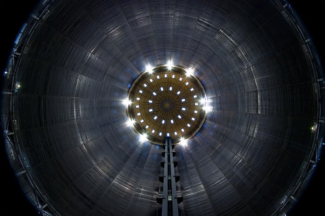 This former gas holder in Sneek has the longest reverb time that we have found so far (2013). Being in there and counting over 10 seconds of reverb to whispers was probably the most stunning experience in our career as reverb hunters.