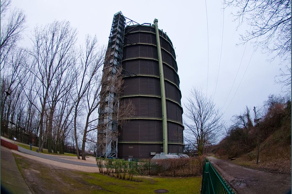 The Gasometer Oberhausen is a former gas holder in Oberhausen, Germany, which has been converted into an exhibition space. It has hosted several large scale exhibitions, including two by Christo and Jeanne-Claude. The Gasometer is an industrial landmark, and an anchor point of the European Route of Industrial Heritage and the Industrial Heritage Trail. It was built in the 1920s, but largely reconstructed after World War II.
