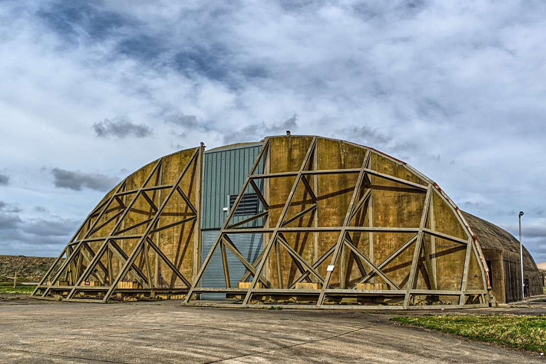This aircaft hangar was used by the Royal Air Force (RAF) during the Second World War, and by the United States Air Force (USAF) during the Cold War, being the primary home for the 81st Fighter Wing. The structure of this hardened hanger is a dome of solid concrete. It has an exceptionally long and deep reverb. Recorded using a genelec 1037 and 6 DPA 4006 Omnidirectional microphones.