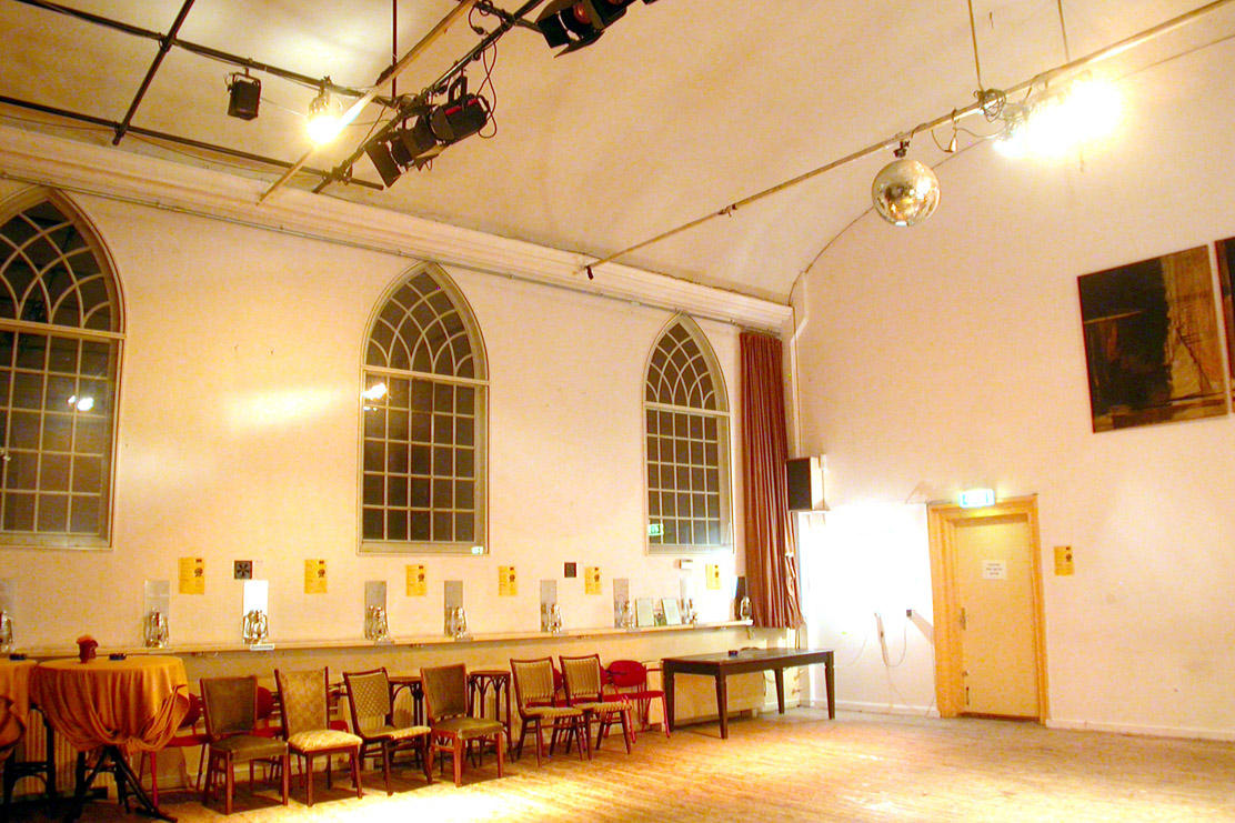 It is a wide, semi-circular room with only seats. The distance between visitors and artists is small at every point in the hall. Even from the two balconies, a seat offers an unobstructed view of the stage. The fully wooden interior and comfortable chairs further contribute to the warm and friendly atmosphere.