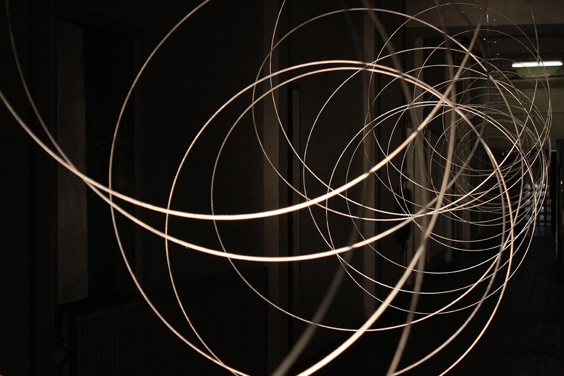 Jochem van Grieken writes: "An experiment with extremely long spring reverbs. For this one I suspended 100 meters of 3.5mm galvanized steel in a long hallway. Audio Ease's initial reaction was 'oh my god: Yes'. And after we heard the output of this monster we thought: 'oh my god: Yes'. Recorded with 4 DPA 4006's for clarity and 4 Piezo's for the sounds in the wire.