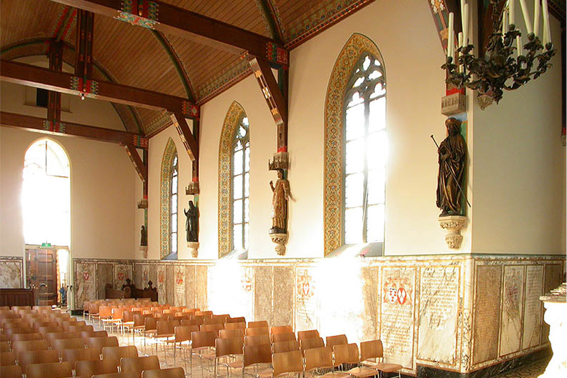 De Haar's separate long and narrow chapel has wooden ceilings and hard stone flooring. The sound is very open and clean and the reverb tail is pretty long for the size of the church.
