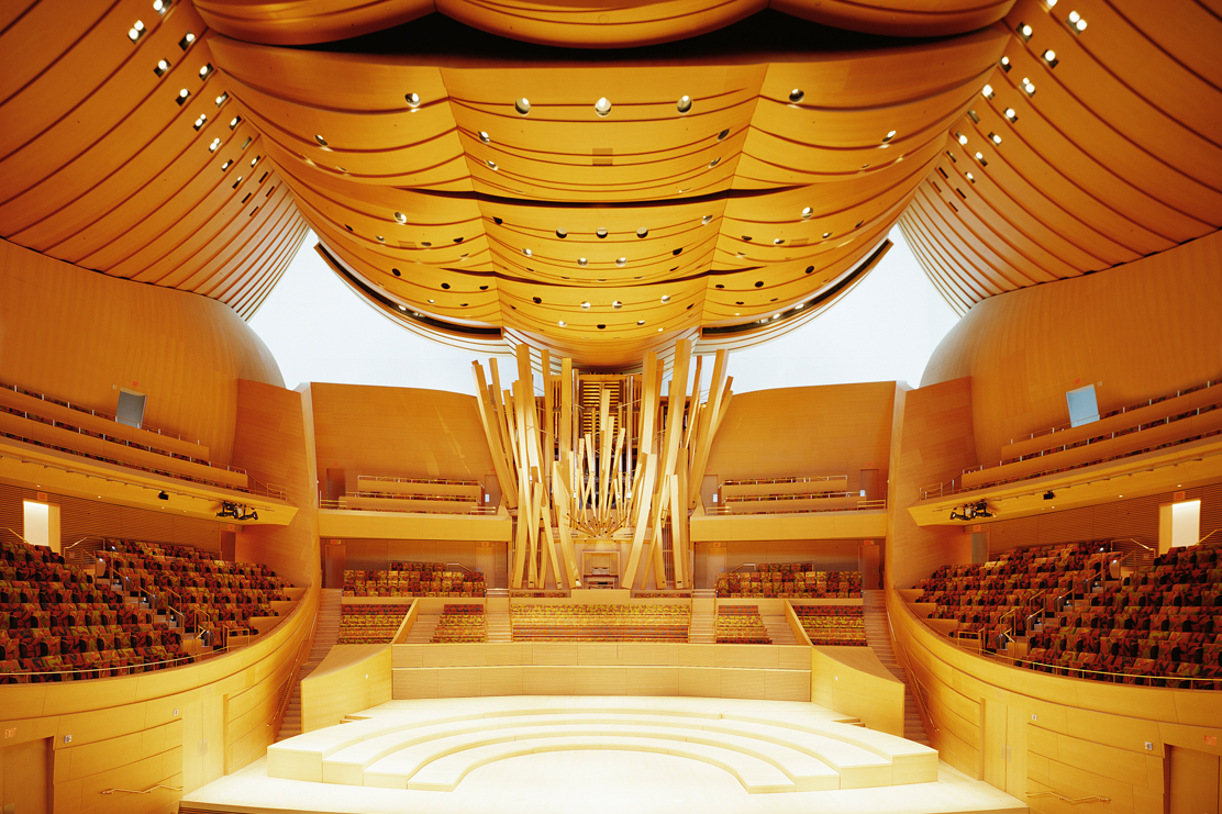 The large concert hall of Sydney Opera House is the largest interior venue at the Sydney Opera House. With its high vaulted ceiling and interior finishes of brush box and white birch timber, it is designed primarily for acoustic performances.