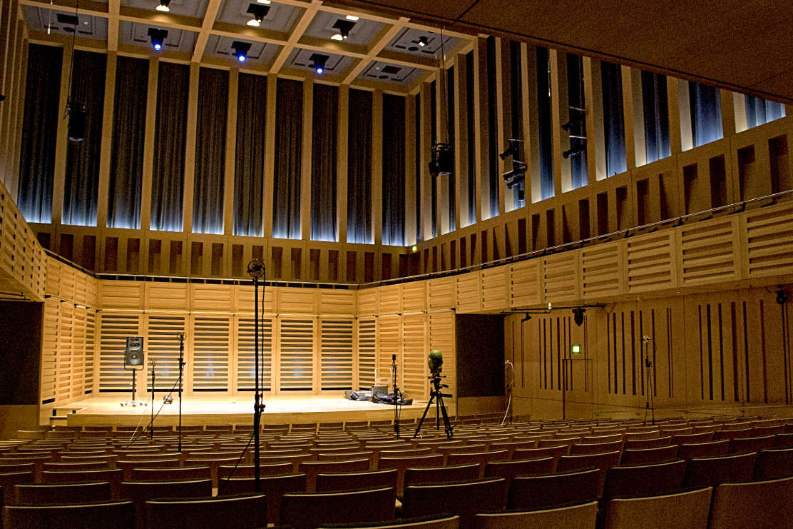 The 1200 seat hall is particularly suitable for the recording of chamber music, but also chamber-orchestras or medium-sized orchestras.